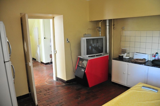 The boiler was in the kitchen, performing double duty as a TV stand. I hate TVs in kitchens, I hate boilers in kitchens and this was just my nightmare come true.