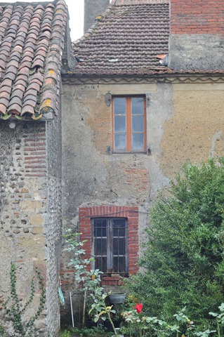 What can you tell from this photo? Well I think it looks gorgeous, but then my brain kicks in and points out there are missing shutters, bars on the lower window, lots of broken roof tiles, different kinds of roof tiles, different kinds of window surrounds, missing gutters, and plants too close to the house. The broken tiles/missing gutters may have caused long term damage.