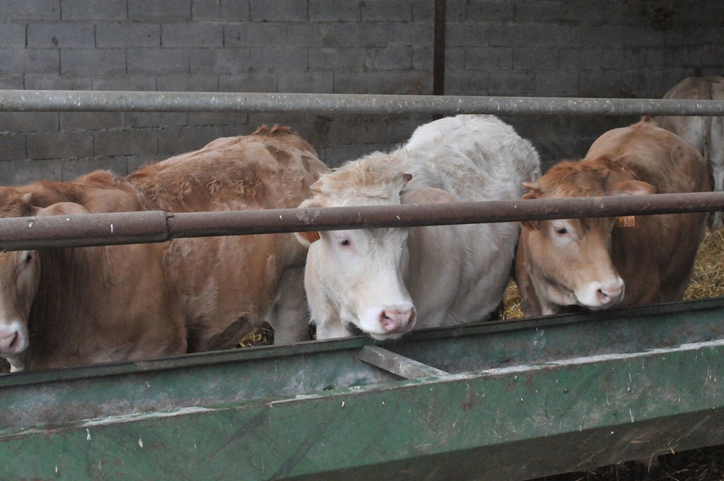 The farm was interesting to me because it sold most of its produce direct to customers. The farmer ran a herd of Blondes d’Aquitaine and took sales over the phone – no internet site. The farm was mostly pasture and he ran his cows in three herds to rotate bulls, keeping the herd inside for the winter months and blowing in straw every couple of days with his pailleuse. [Note to self: look up the English word for the straw blowing machine.]