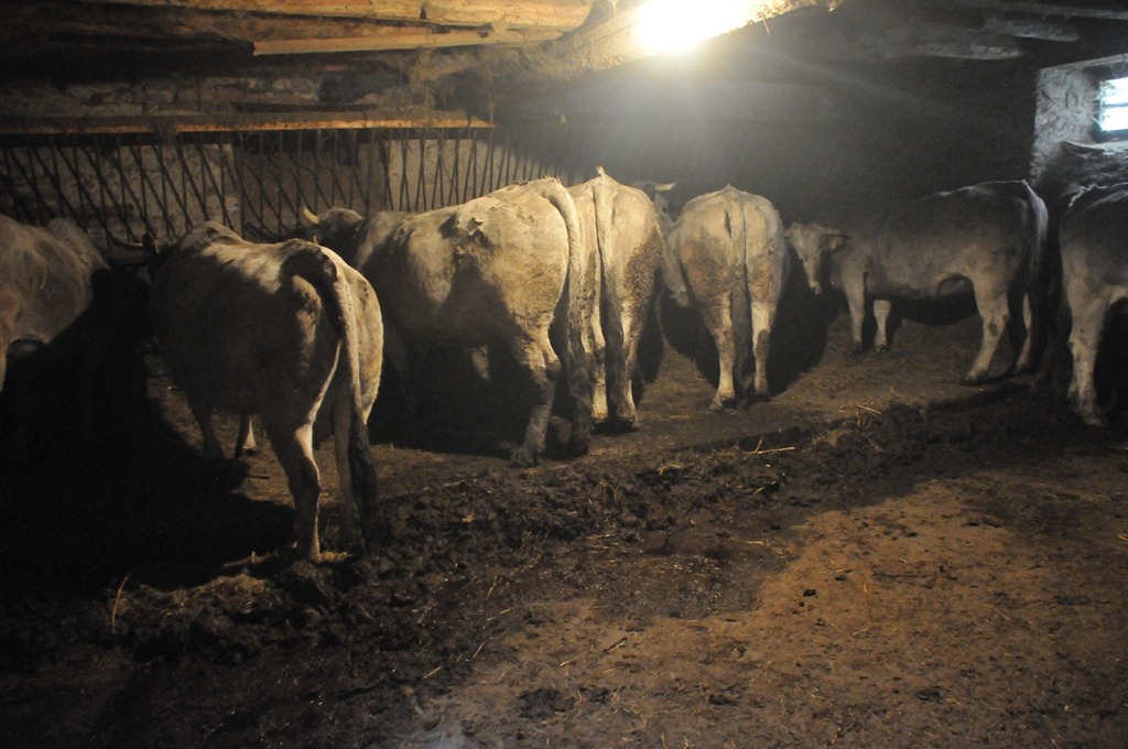 Those are Gasconne cows. Notice the old-style feeder on the wall. The farmer stores hay in the space above the ceiling. As I talk to all these old farmers, I get the feeling I am seeing an entire era of France passing away.