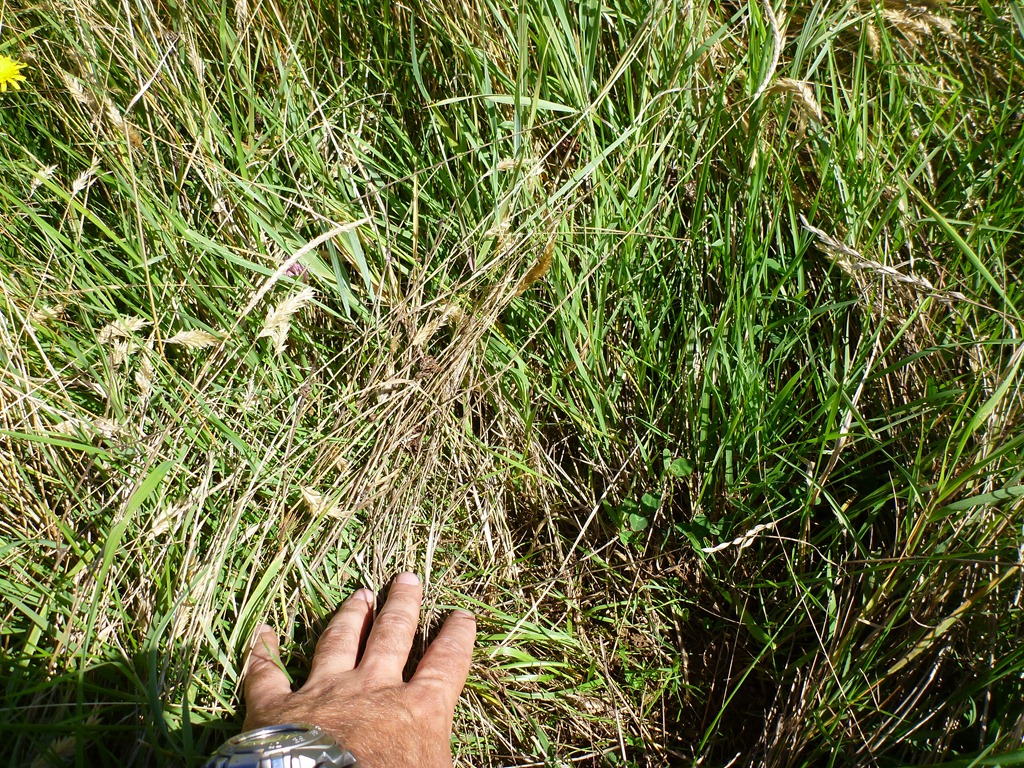 The herd has now left the Florida* paddock and is now eating the ripe lucerne of California, but they left a lot of Florida’s grass still standing. This is mostly early spring grass that is now dormant and was left when the cows ate the fresh stuff underneath. Most of the dry stems were trodden in, but they didn’t do a complete stomping job.
