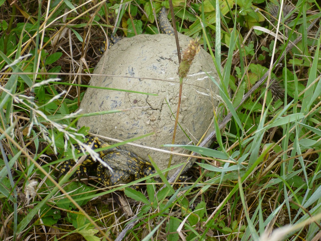 A yellow spotted turtle decided to go for a walk away from its home lake out through the Detroit paddock. He’s a bit muddy but you can still see the yellow spots on his legs. Apparently they make good pets and can live forty years. We left this guy out strolling, maybe we’ll see him again.