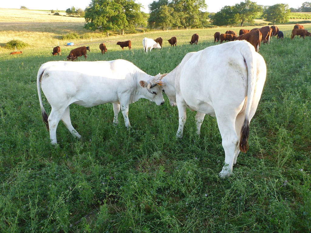 Heifers on heat. In the absence of a bull, they’re nuzzling. And treading on some nice lucerne.