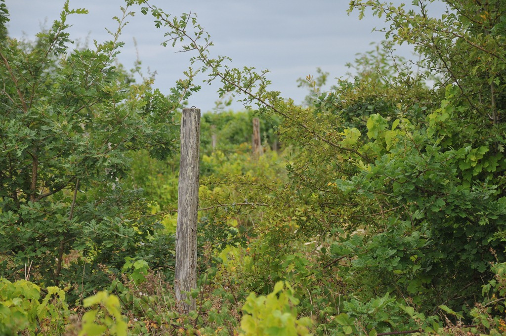 Between the taller trees and the old vines the land has a mysterious feel. The land is hard to walk into because of the thickness of the scrub. And the local chasse tell me that sometimes they find sanglier (wild pigs) living in there.