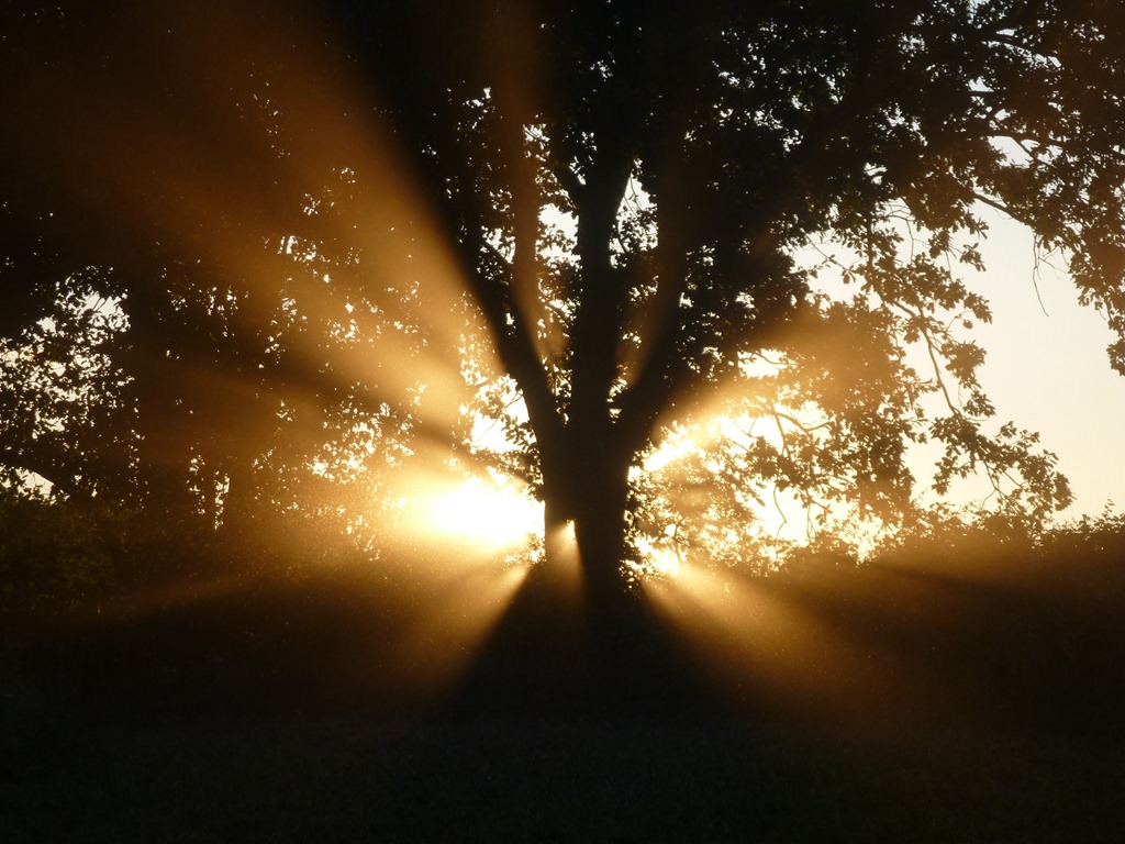 There’s a hole where the trunk splits and merges, so the sun shines through the tree at that spot.