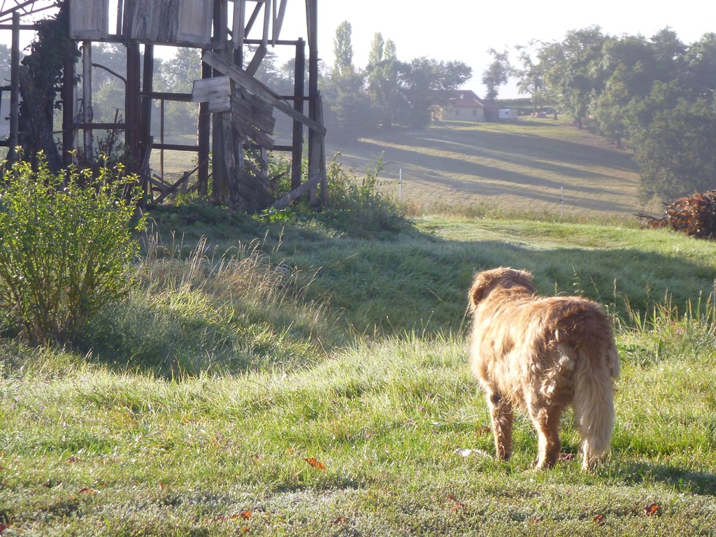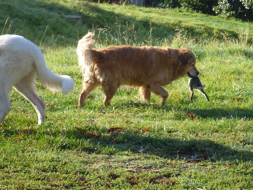 What does a dog do when her food supply has been restricted and she’s a stomach with a leg at each corner? She looks for a rabbit near the woodshed.