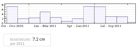 Now the weather station the data is from is about 50km away so it isn’t altogether accurate, but it is close enough. It lists the rainfall so far this year at about 330mm. That isn’t a lot. In summary, we had little or no rainfall in April-May-June and August-September-October. The government is handing out drought payments to the farmers here. Don’t get too excited for us, we only get four hundred Euros or so and then we pay tax on it. The last time they received drought payments out here was only eight years ago so we aren’t talking something too exceptional.