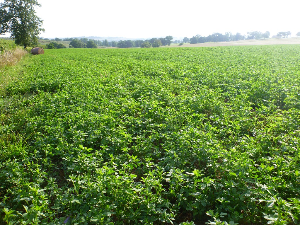 Enter lucerne, which saved our ass. This is a legume known by various names throughout the world. Here it is called luzerne, in Australia it is lucerne and in the USA it is called alfalfa. In the middle of a dry summer it looks like this: