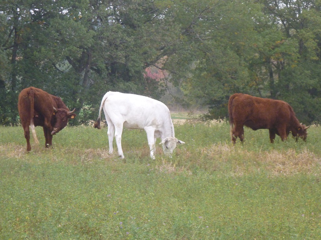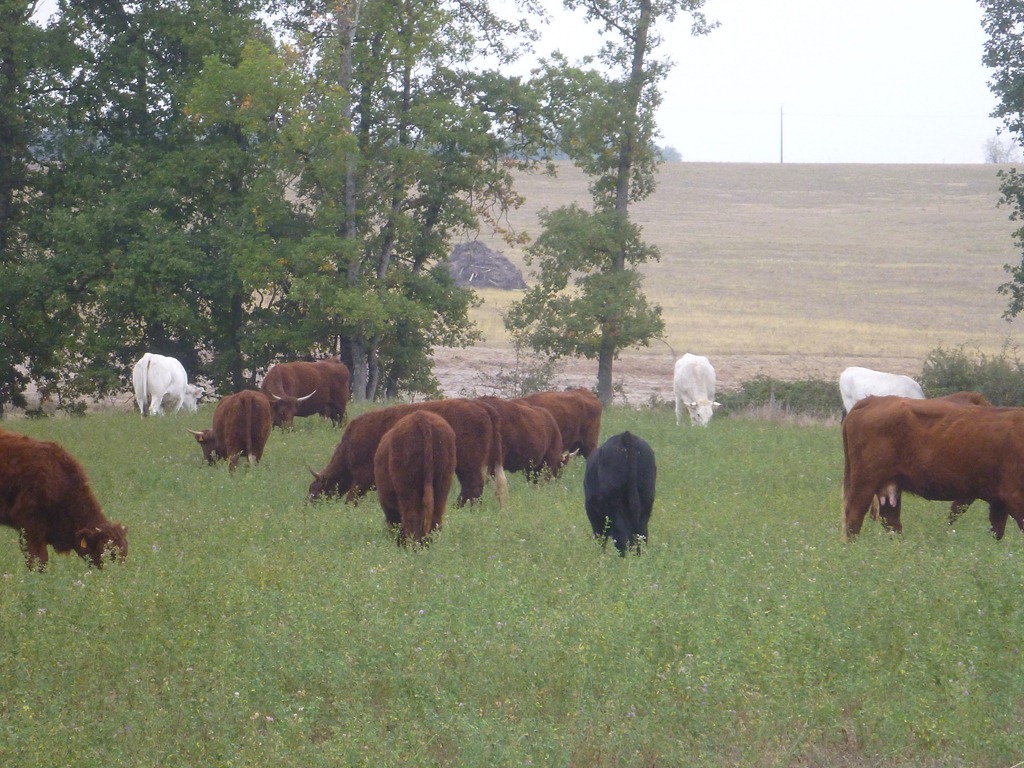 This has a lot of impact on how we want to farm. Based on their history of crossing with British Devon cattle, I’d guess that the Salers will mature earlier and make good marbled beef at a younger age. Do these photos show the evidence of this earlier maturity or is it something else? It could be that the Salers just do better on the grass at our farm, or that they like the sunnier weather of the Gers. Either way, a better finished carcass lets us hang the beef to produce more flavor.