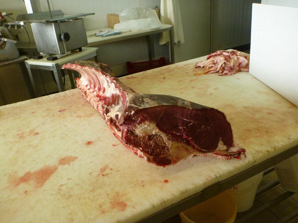 This guy ate grass and hay (mix lucerne/grass). If I wanted him fattier I would have castrated him and waited another year or two. For some breeds they talk about finishing steers at 4 or 5 years! Even the intact bulls tend to wait until 24 months before slaughter and they’re still lean. The farm I visited a few months back served 22 month old bull beef that had been inside eating corn silage and cereals since a few months of age. We don’t do that.