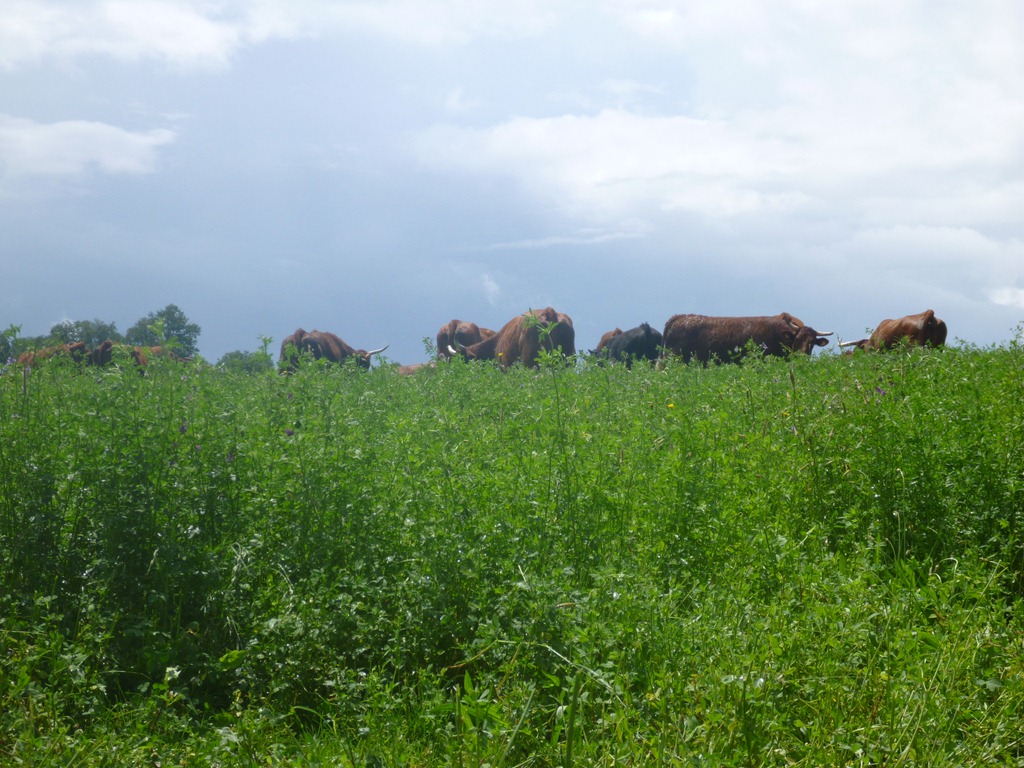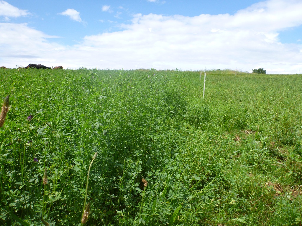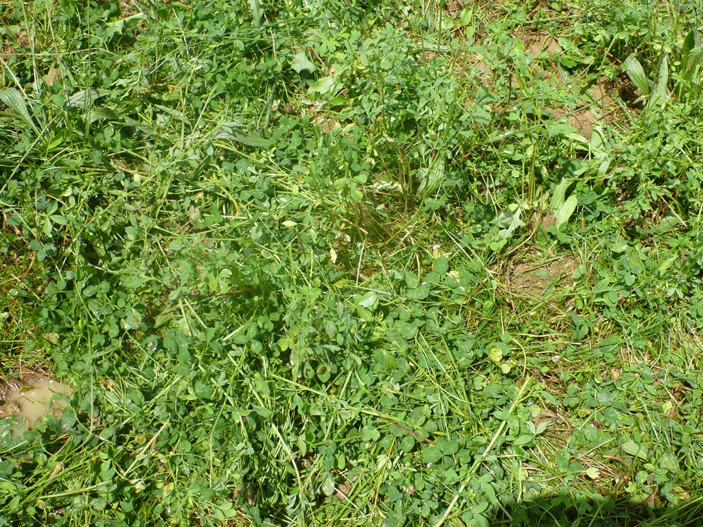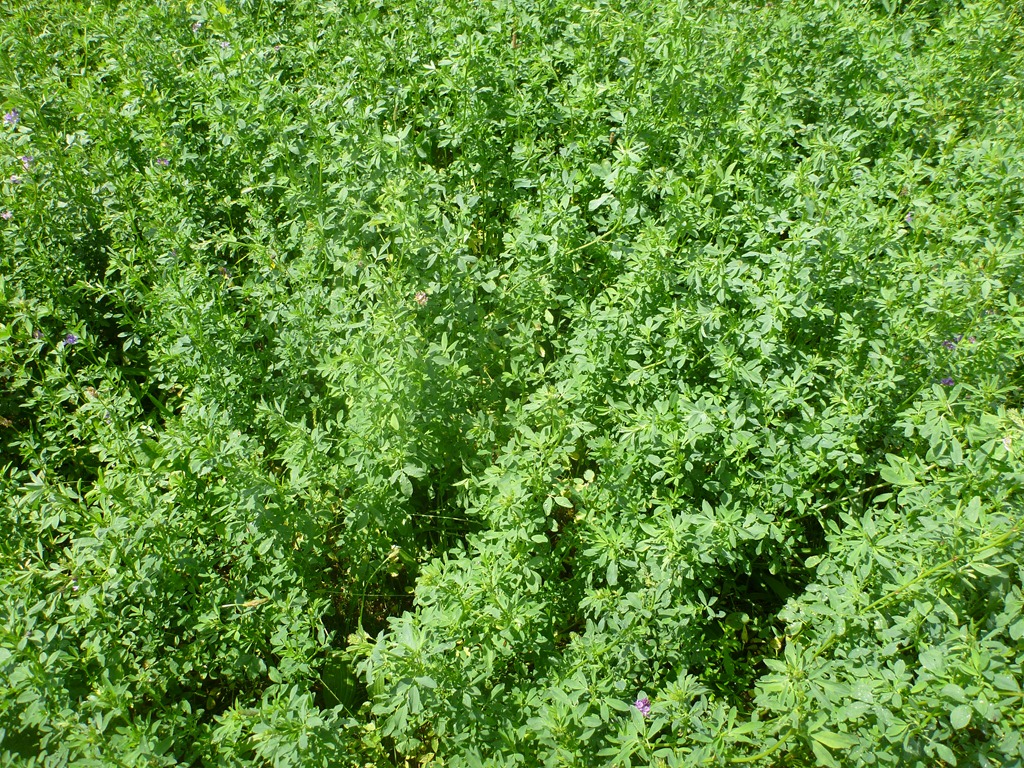 The untouched lucerne is on the left, the eaten end trodden-on part is on the right.