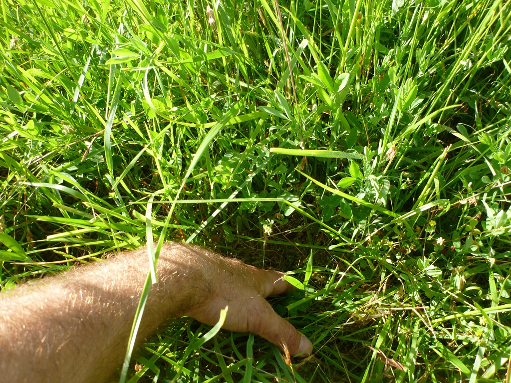 Then the dead material did not get absorbed into the soil. Either because of the heat of summer or the drought it just lay there. The worms slept way under ground. Mowing helped break it down physically, if not chemically, but the standing thatch just blocked sunlight. We needed more cows to do the treading, more rain, more fertility, more cowbell, more something.