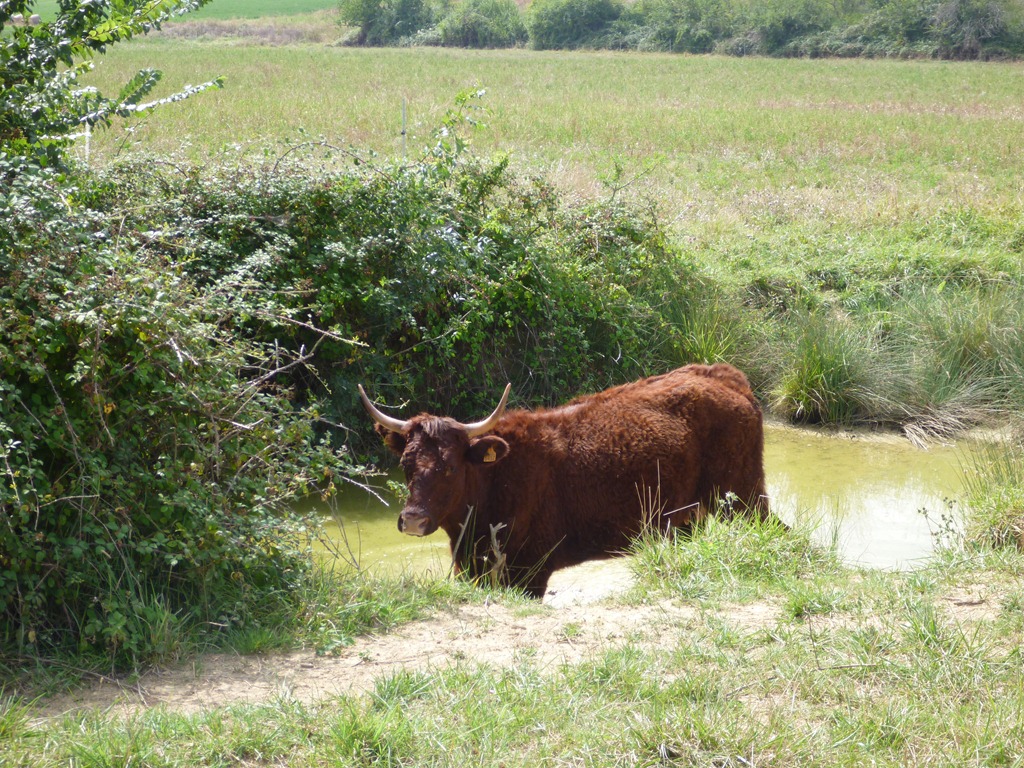 Here’s is the top of California where things are flatter and the view is great. It is a fine spot to build a house with is all-around views. Those brown dots in the distance form our herd of Salers.