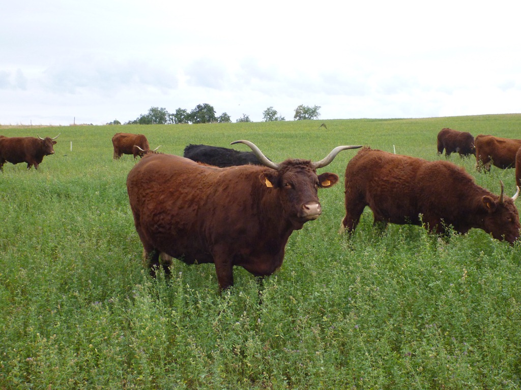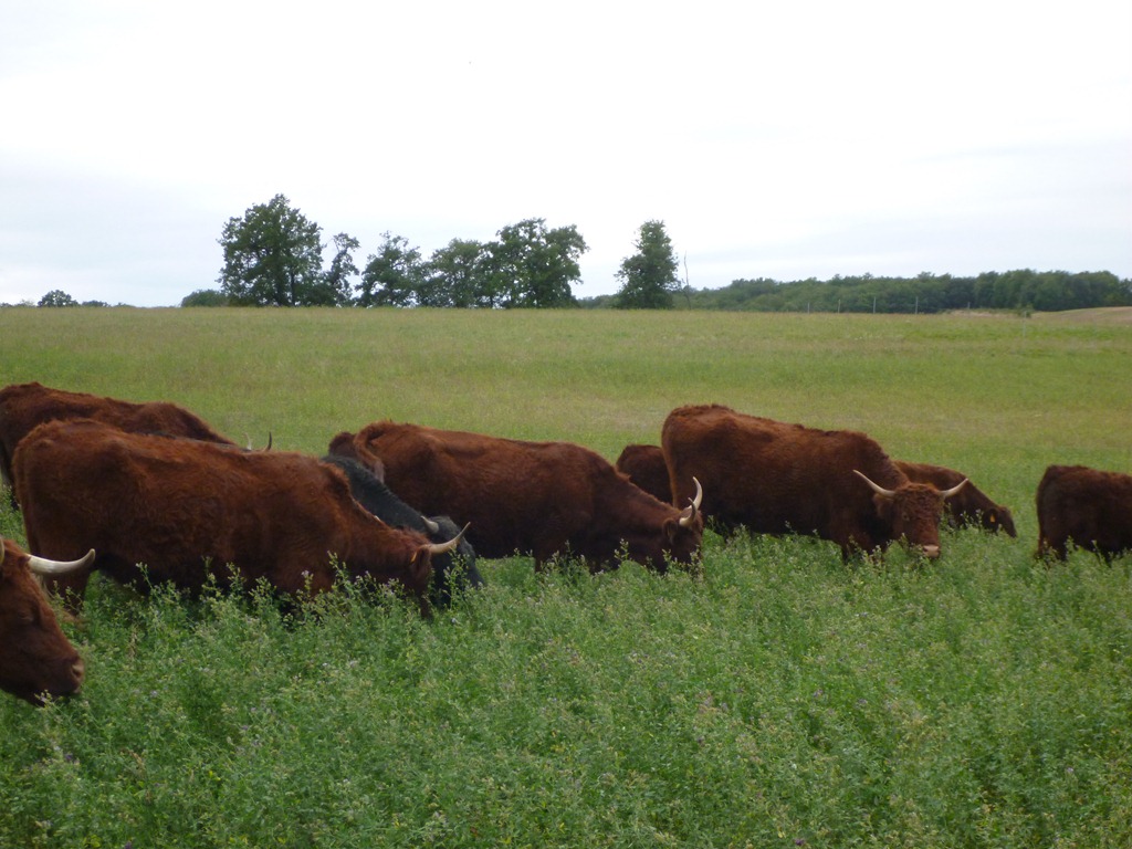 Heads down eating. Little Hoff is almost hidden by the lucerne.