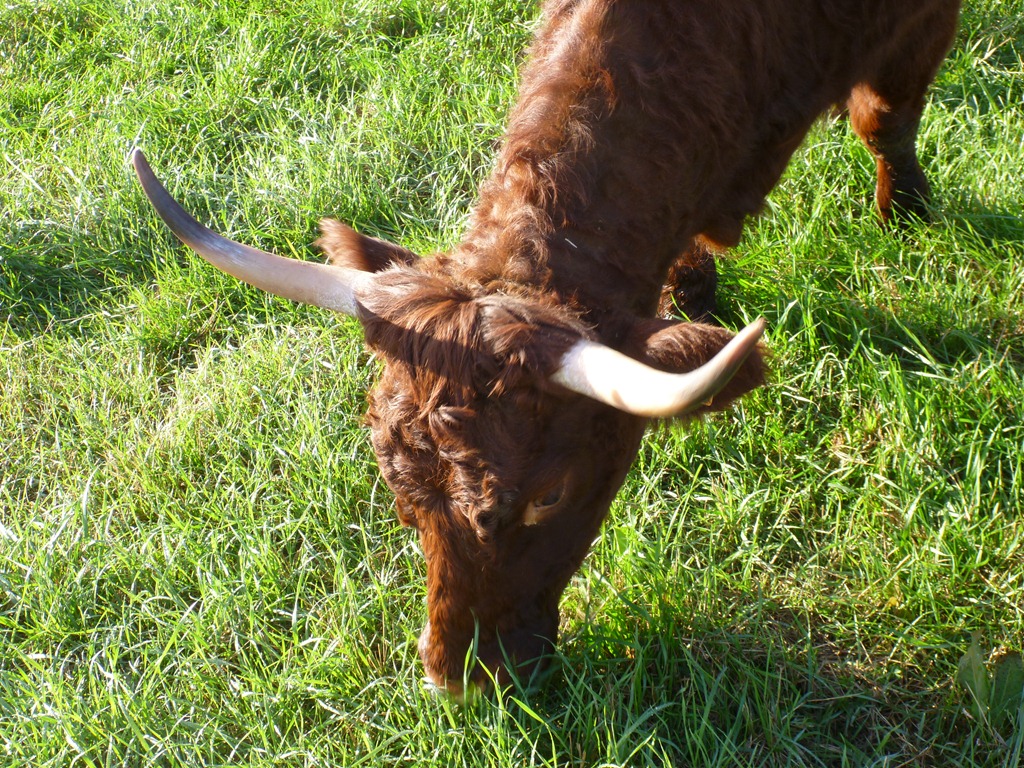 Heifer 28 eating some natural grass in Triangle. Since it was full of dead standing grass, I mowed it back at the end of summer and it has grown back well in a short time.