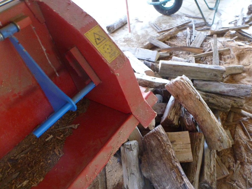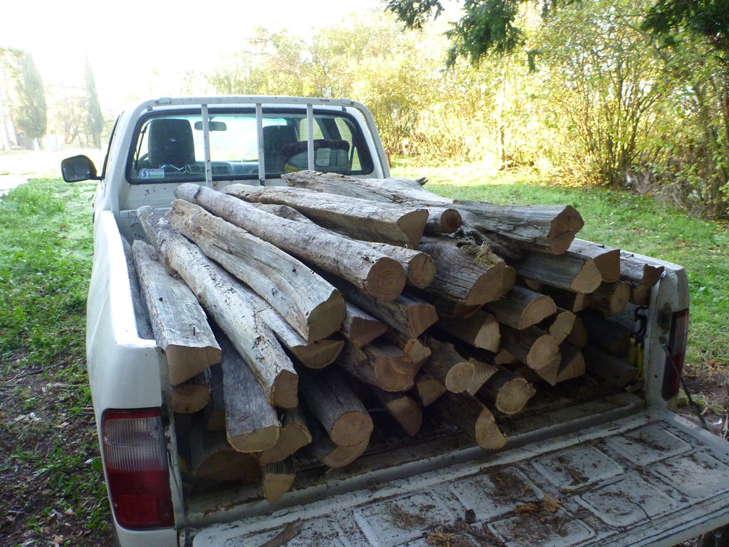 Bruce the saw and a pile of post tops. The fun here is making sure the saw blade misses all the old nails that are still in the wood. The wood itself is called Acacia and is very long-lasting in the soil. These posts were probably in their vineyard for thirty years or more.
