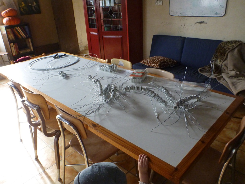 Zélie managed to sneak into the shot. She likes to hand me the insulators as I cut the wire.