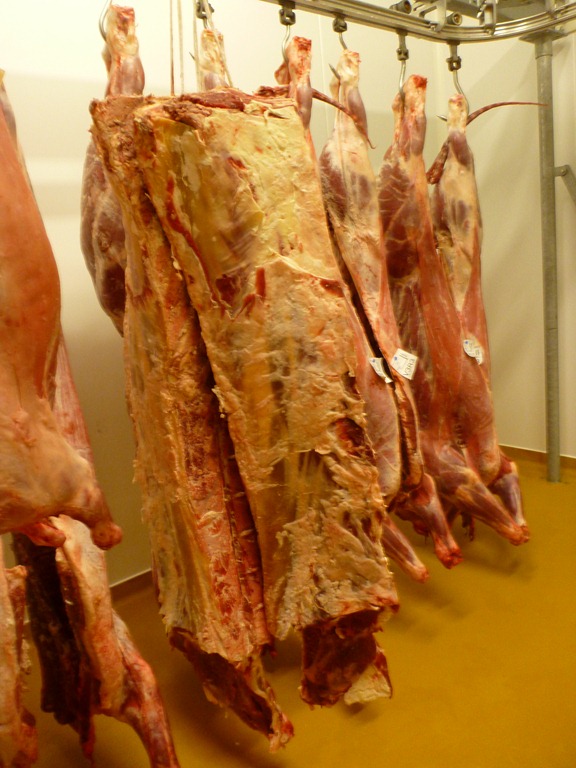 We have beef that is dry-aging at the butcher’s premises in Auch, so I checked it out when picking up the mince. The butcher remarked that the carcass had a good layer of fat, which made it a surprise to him when I mentioned it was grass-finished.