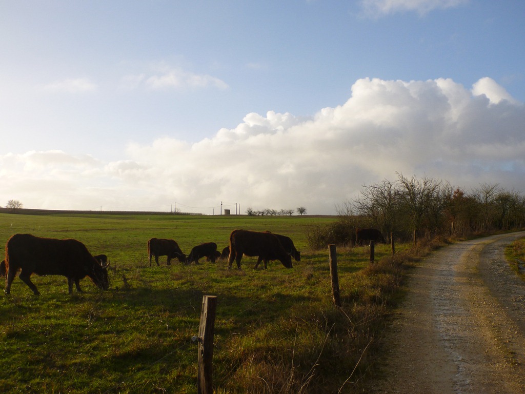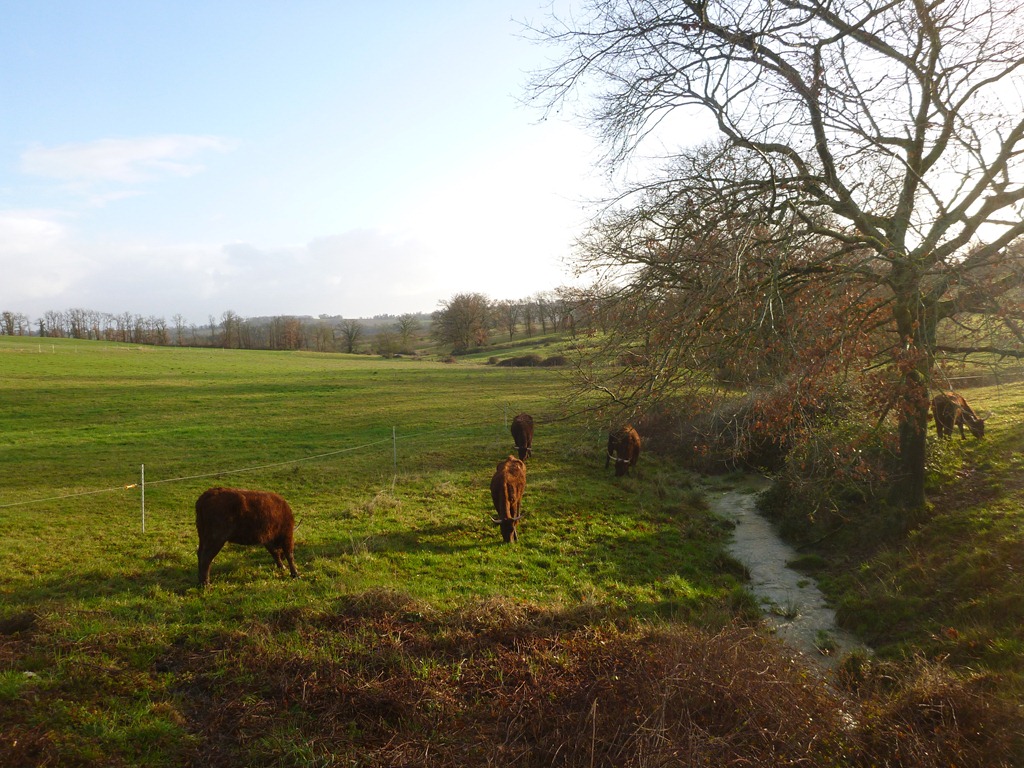 The new Gascon-style fence at the side of Triangle looks better than the rickety old one. The Salers approve.