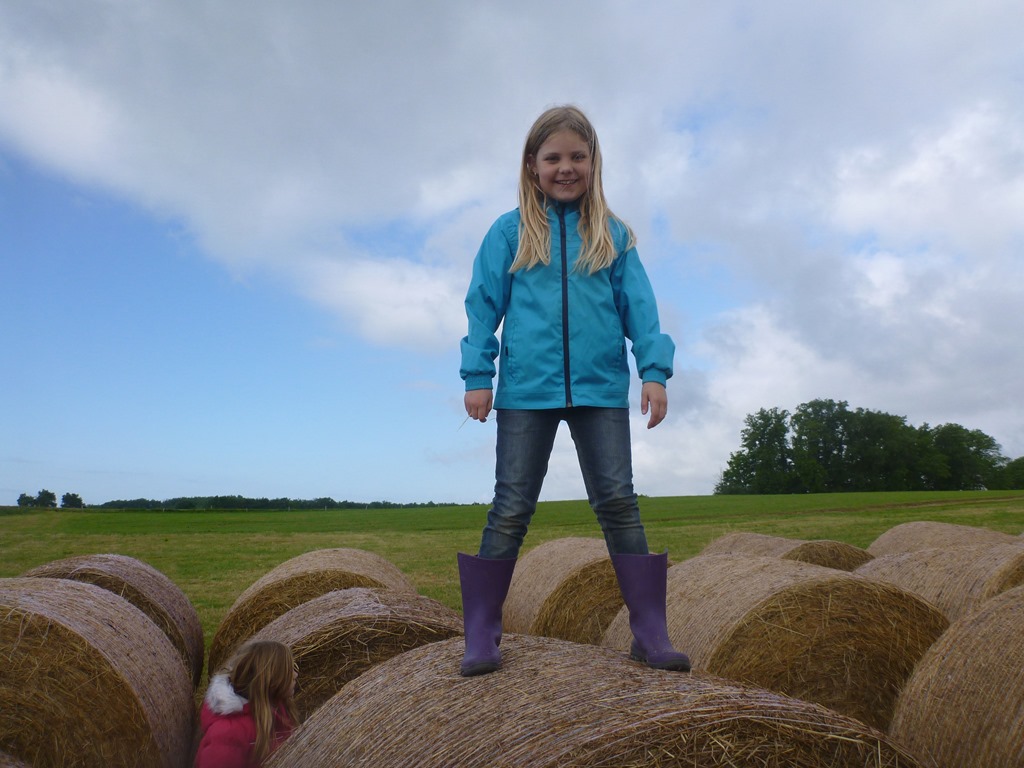 I love the effortful concentration on Minty’s face! Hay bales are so much fun to play on, and yours are so solid they won’t fall apart.