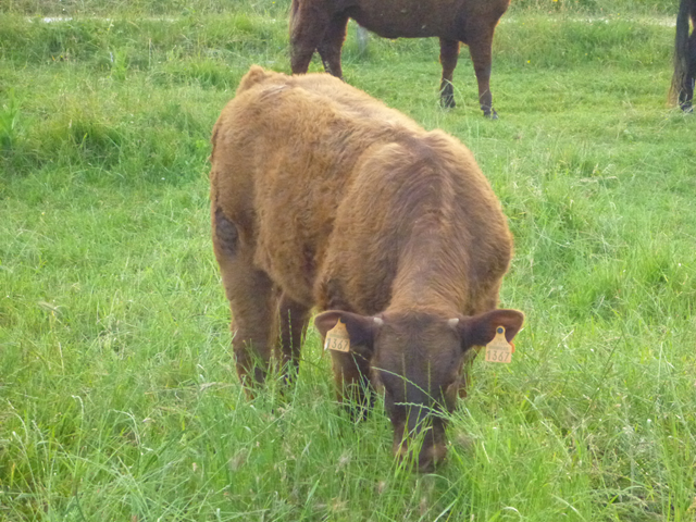 This steer is twelve months old. He’s doing fine on all the grass we have. He’s not as stocky as I like but he’ll fill out.
