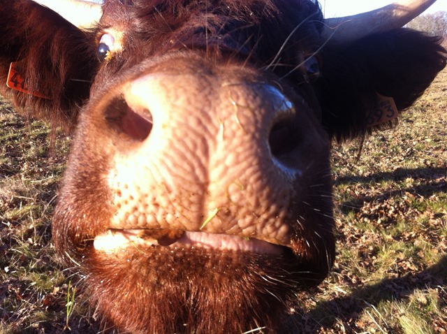 Ah I mean the breed added British genetics, not this particular farm. French breeds have central management (of course – it’s France) and back then they imported Devons, Highlands and Durham Shorthorns. The official Salers story is that all the imports died of tuberculosis but if you look at Highland cattle web sites they talk about their genetics being in the Salers. If you mixed Devons with Salers I’d have a hard time telling them apart except I think the French have selected for the big horns.