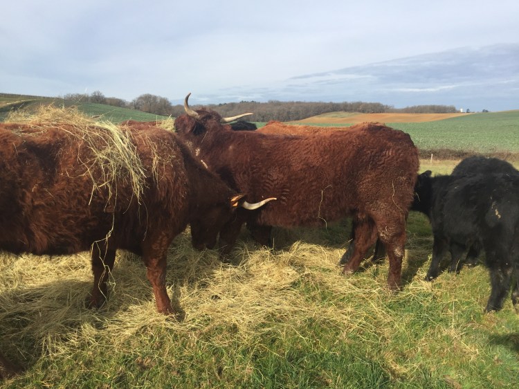 The paddock they are on has a bit too much agrostis so I’m feeding a bit of hay there to push down the agrostis and allow the taller grasses to push through.
