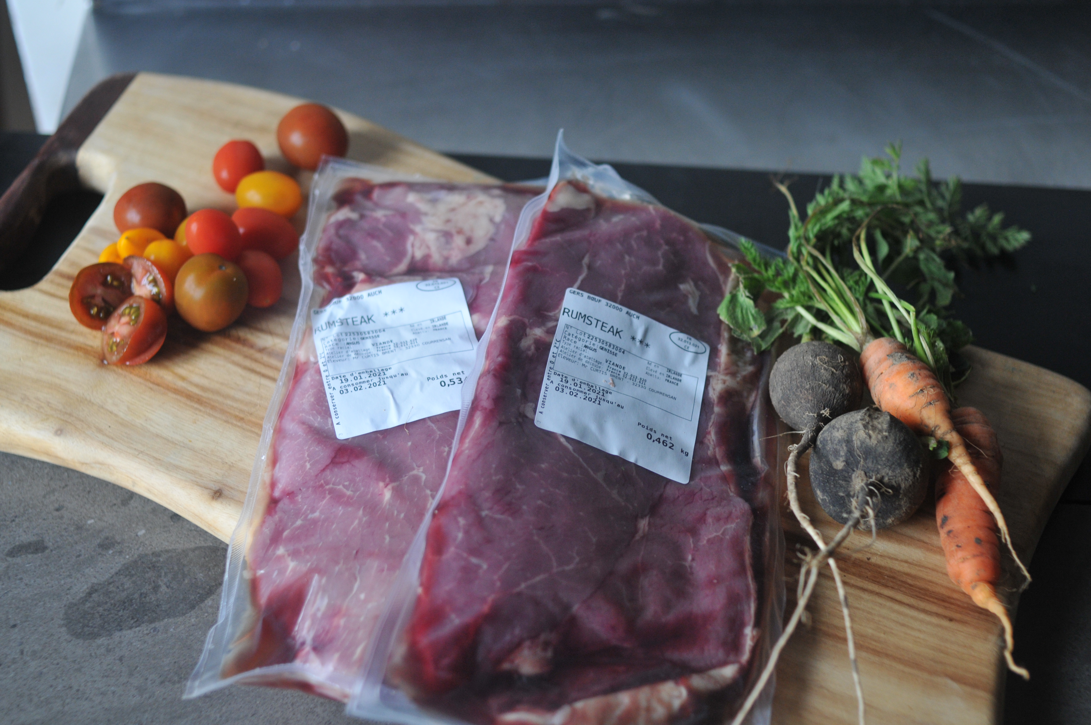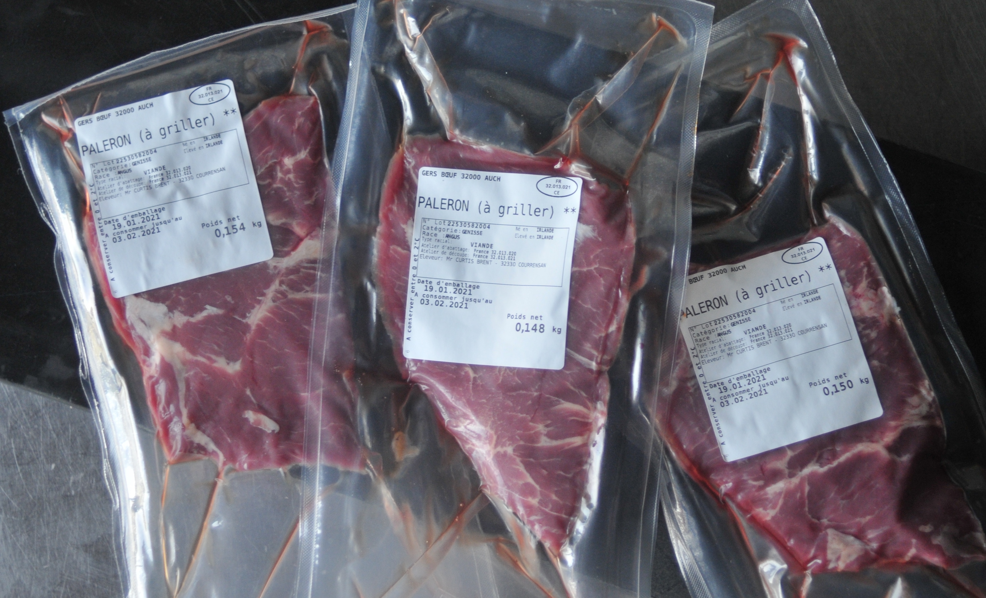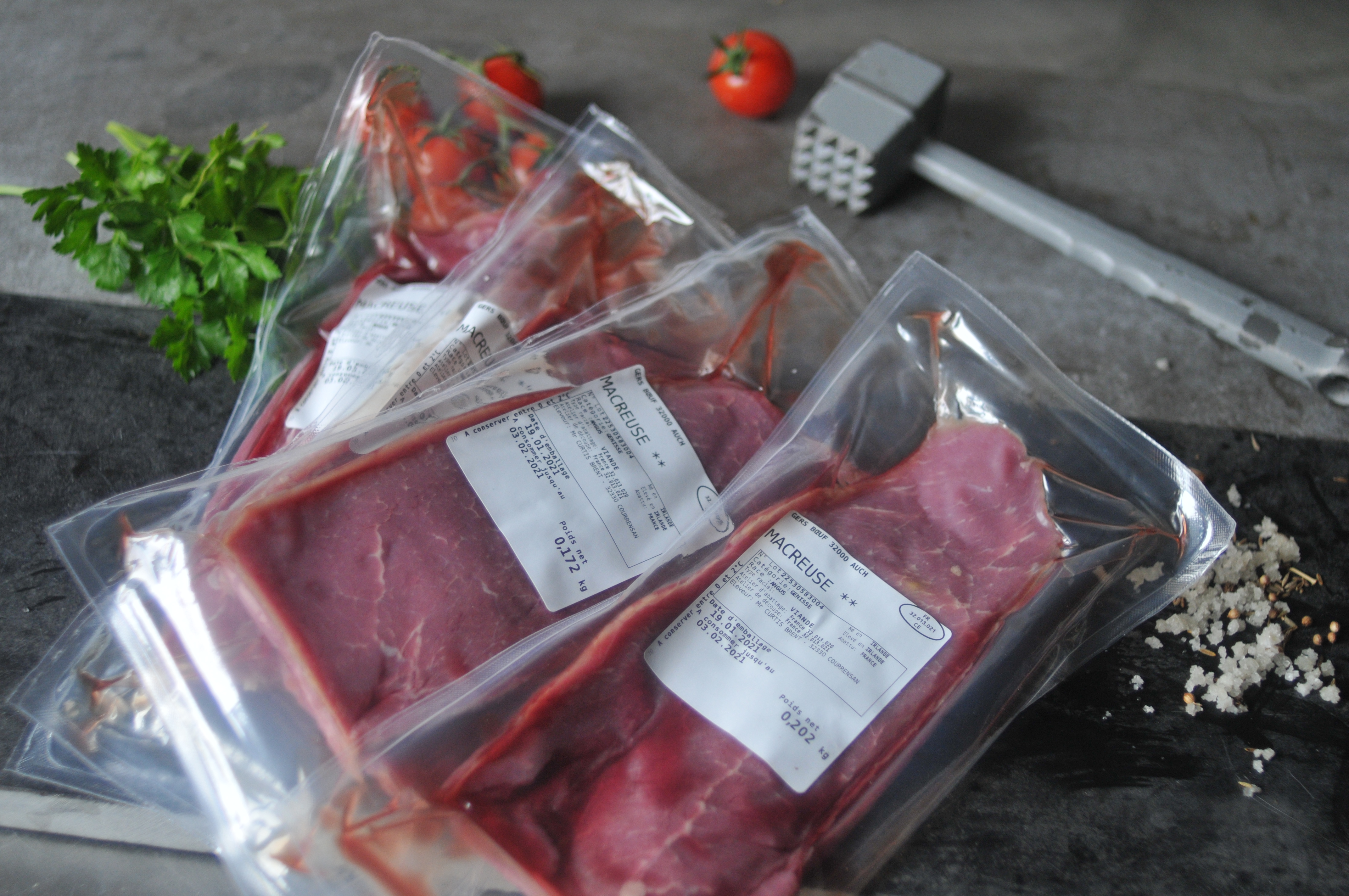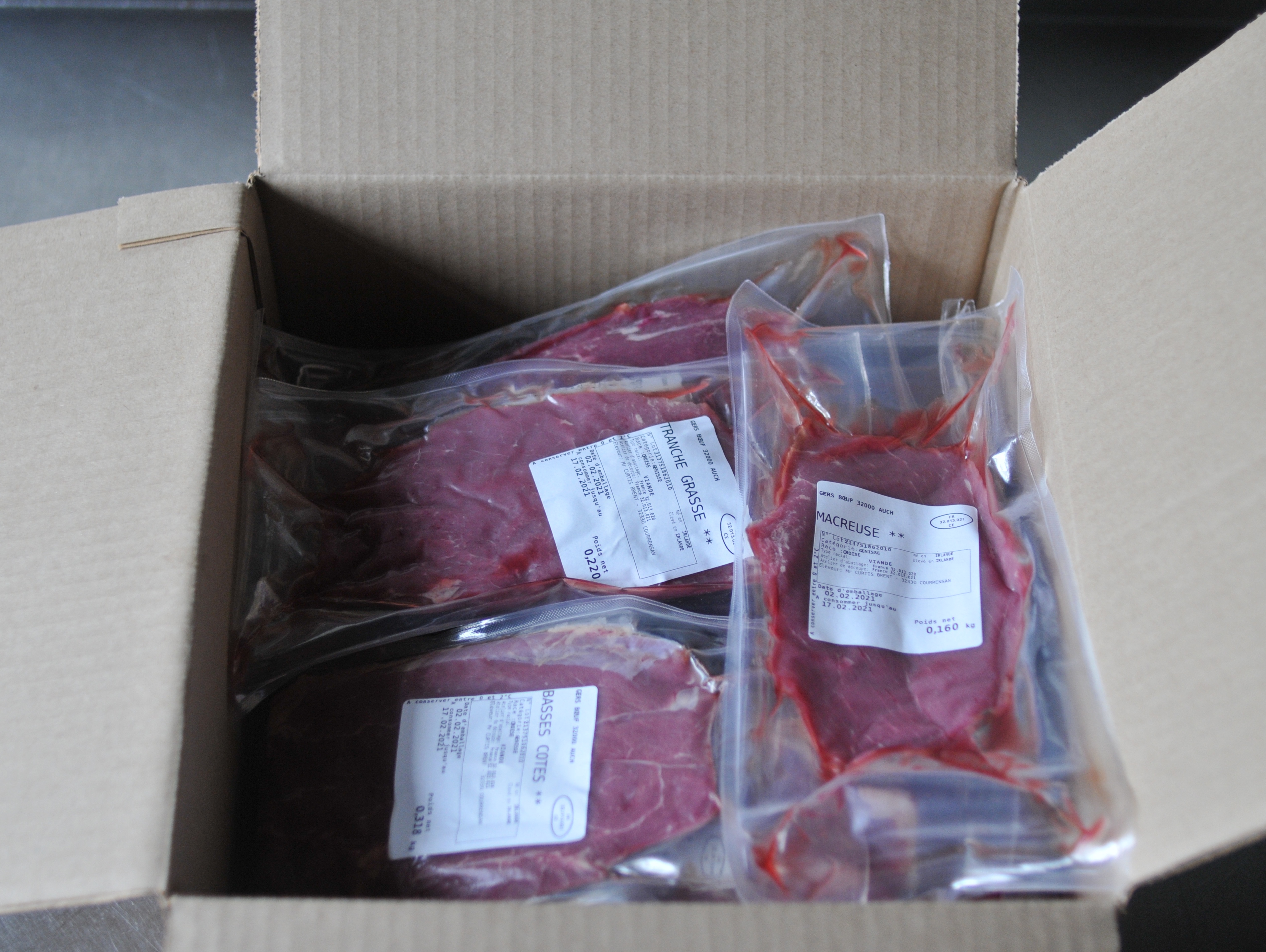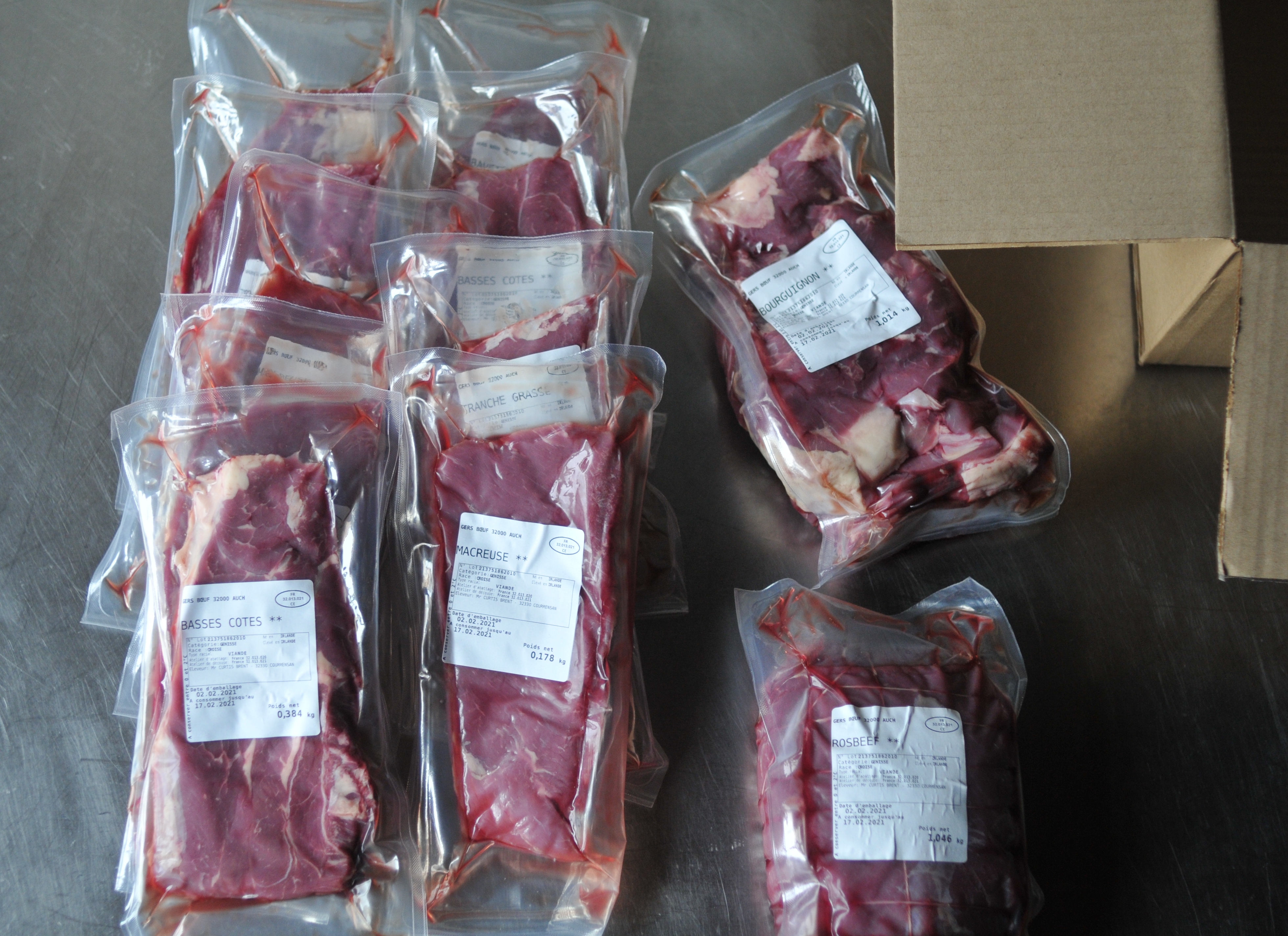 Value, 4kg Carton 60€ . . . 2kg petit steaks (basses cotes/paleron/marcreuse/tende de tranche), 1kg Roti, 1kg Bourguignon